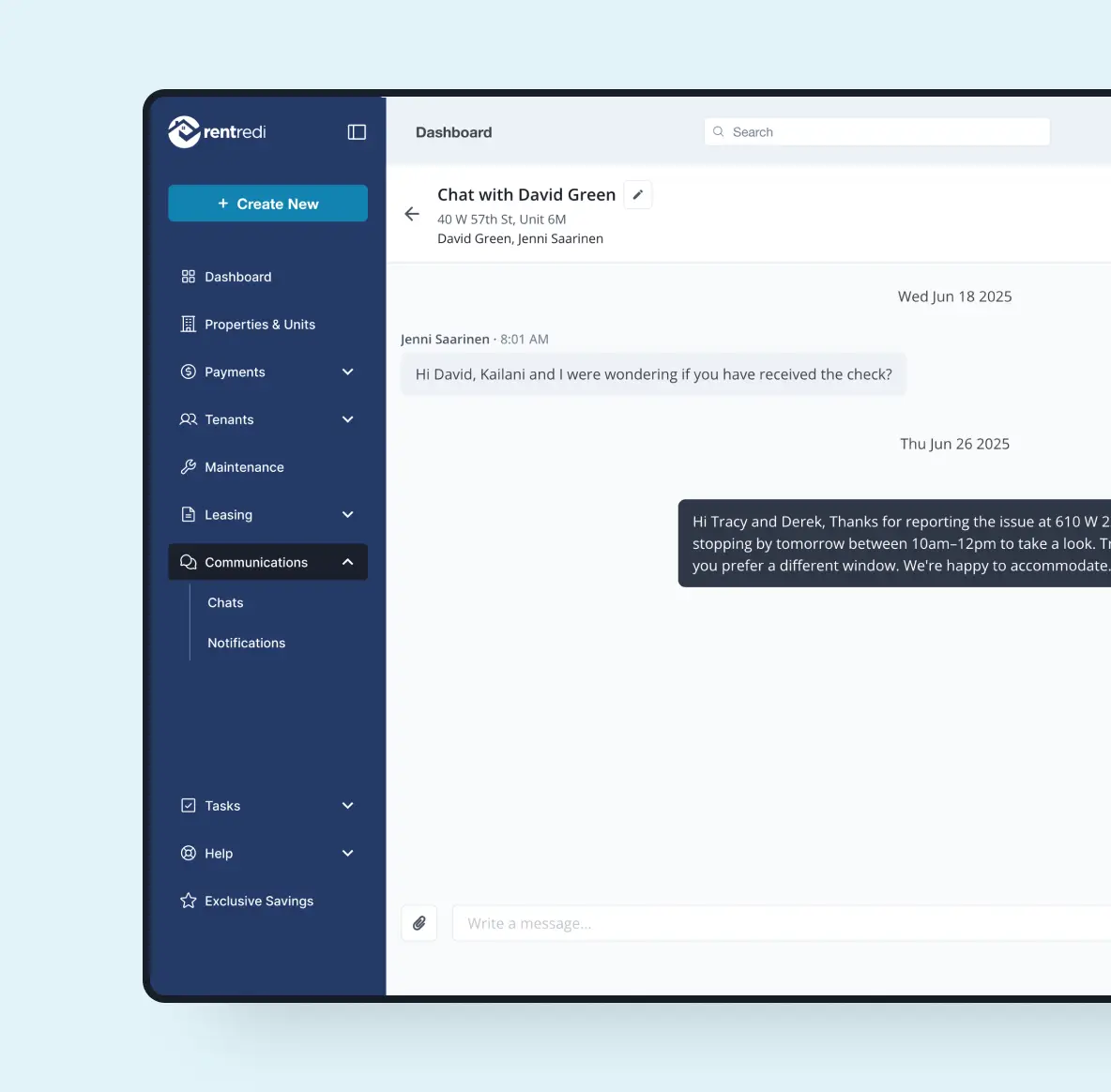 - Tenant chat