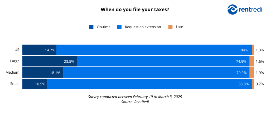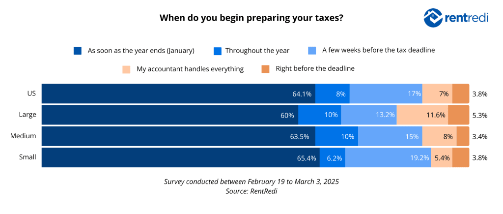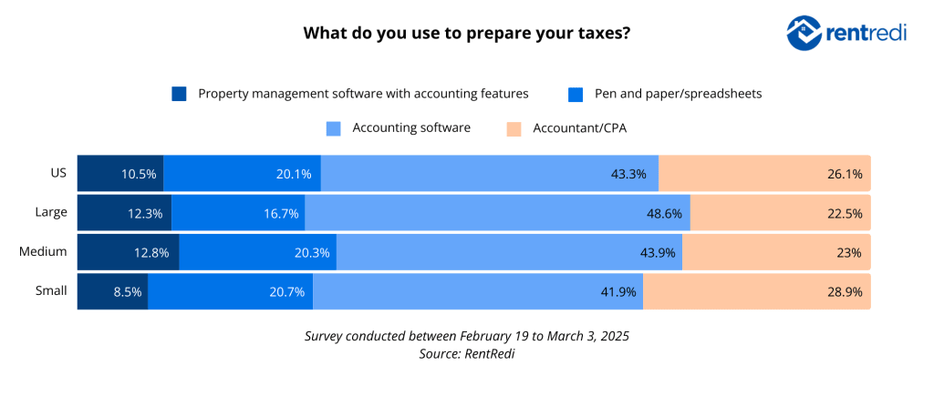 RentRedi, property management software, has released its Tax Preparation Trends Among U.S. Landlords survey findings. The survey examines how landlords of various sizes prepare for taxes, revealing differences in filing methods, expenses, and the use of professional services.