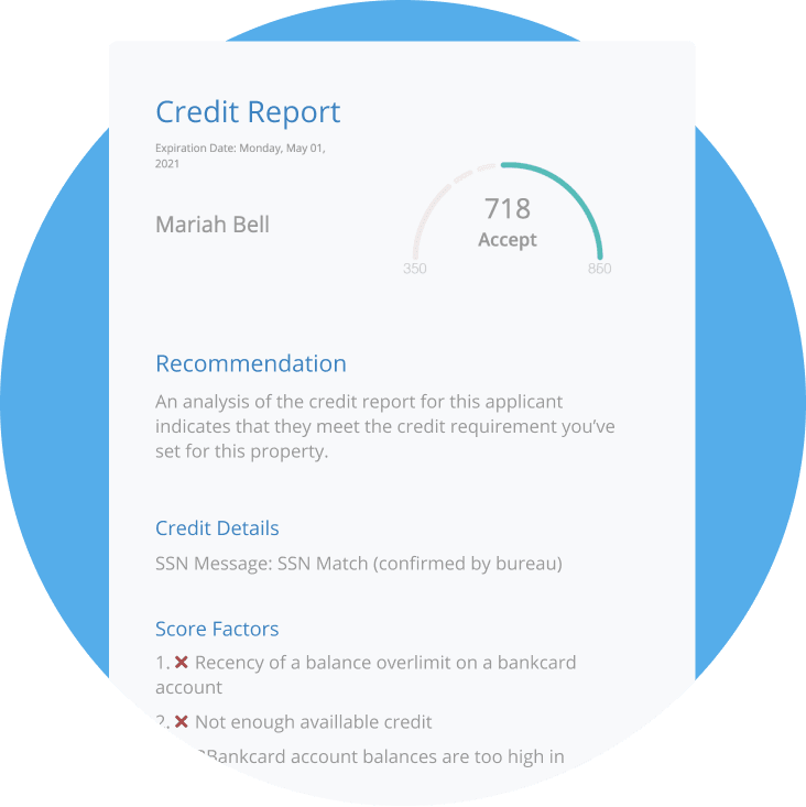 - Full credit, criminal, and eviction reports